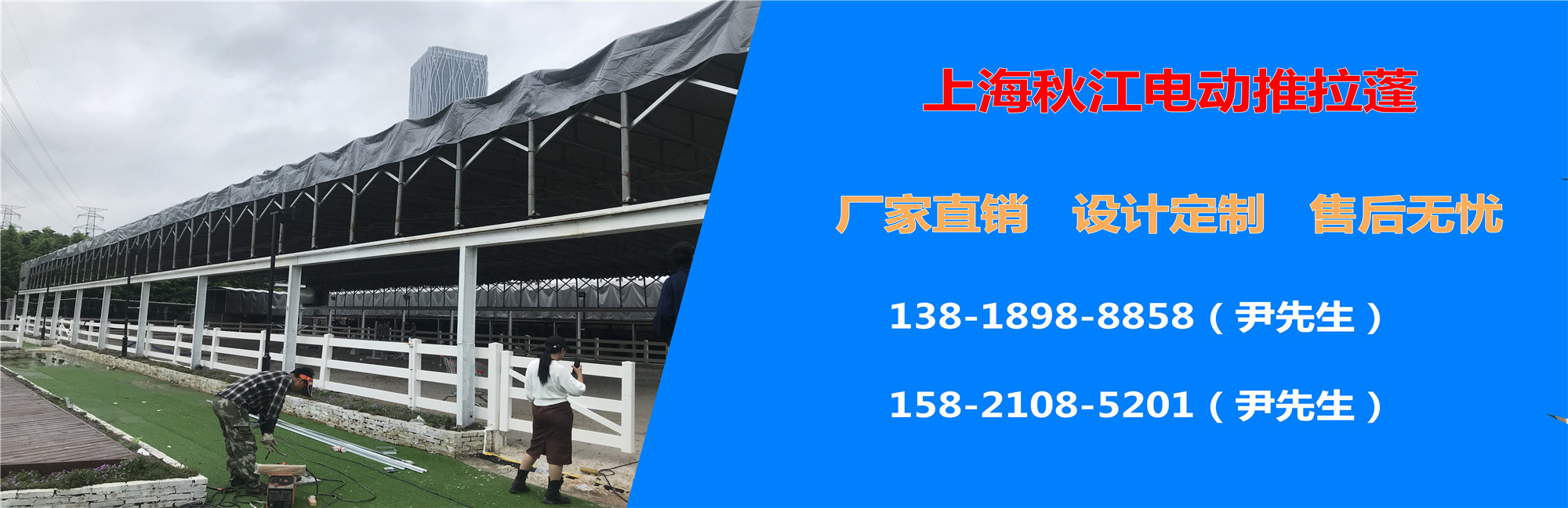 上海秋江膜结构工程有限公司始建于2011年,公司主要从事户外电动推拉蓬设计、制作、安装和施工,及工程创新开发一体化的专业电动推拉蓬公司。公司现已拥有一批专业的电动推拉蓬技术研发设计施工人员,在国内从事膜结构行业领域人员,对电动推拉蓬工程设计、制作、施工累积了多年的丰富经验。